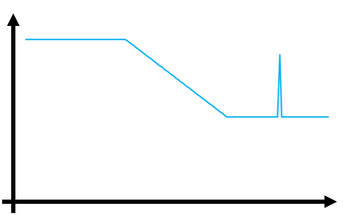 従来機能の固定しきい値で後半の異常を検知しようとした場合、①の様な設定を行いますがその場合前半部分が常に設定値を上回ります。逆に②のように設定を行うと後半部分の異常がしきい値を超えない為エラー判定することができません。